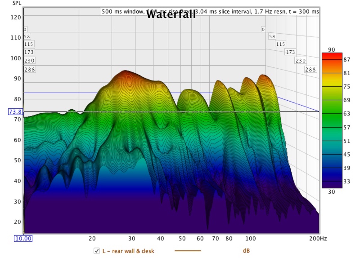 Waterfall for rear wall (now) treatment - quite a bit smoother, but still some really low rings to look at - I wonder if that could be related to having the fan on?: