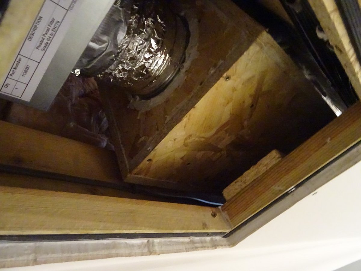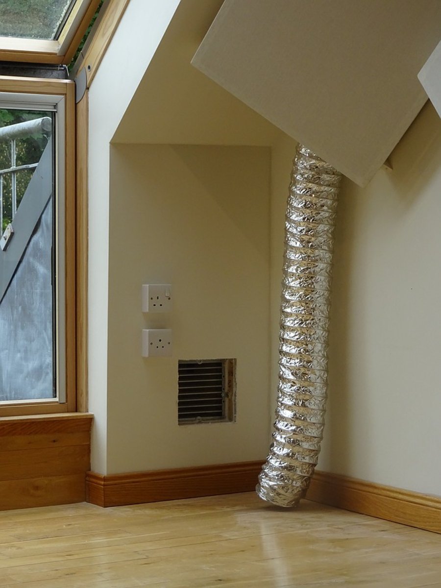 I've done a very quick test routing of flex pipe to the rear of the room, on the opposite corner to the exhaust vent.