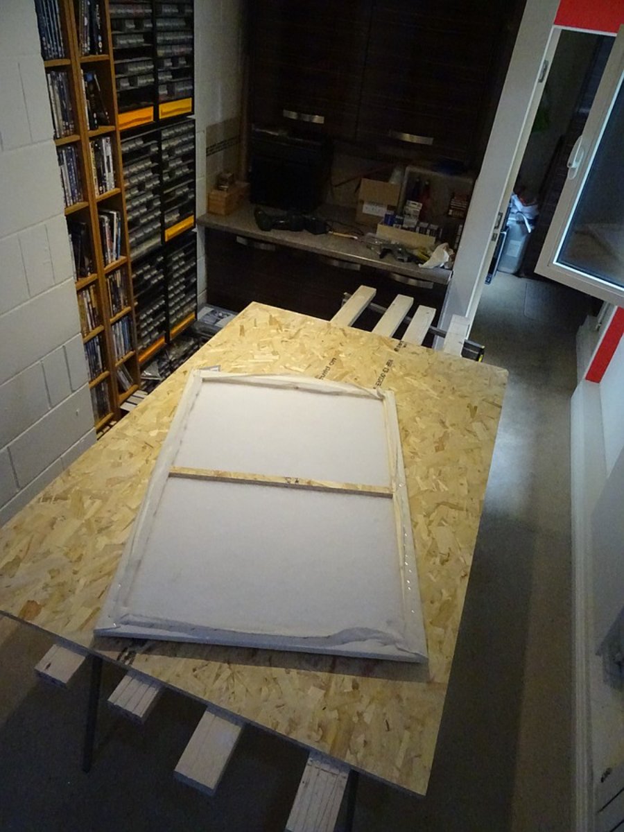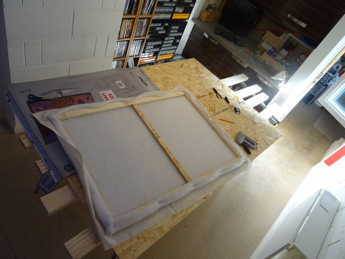 Assembly sequence for the covers. There is no insulation as such, just the fire retardant wadding (as recommended by Starlight) to cover up the interior of the traps. Covered by self coloured calico, sprayed with a fire retardant spray.