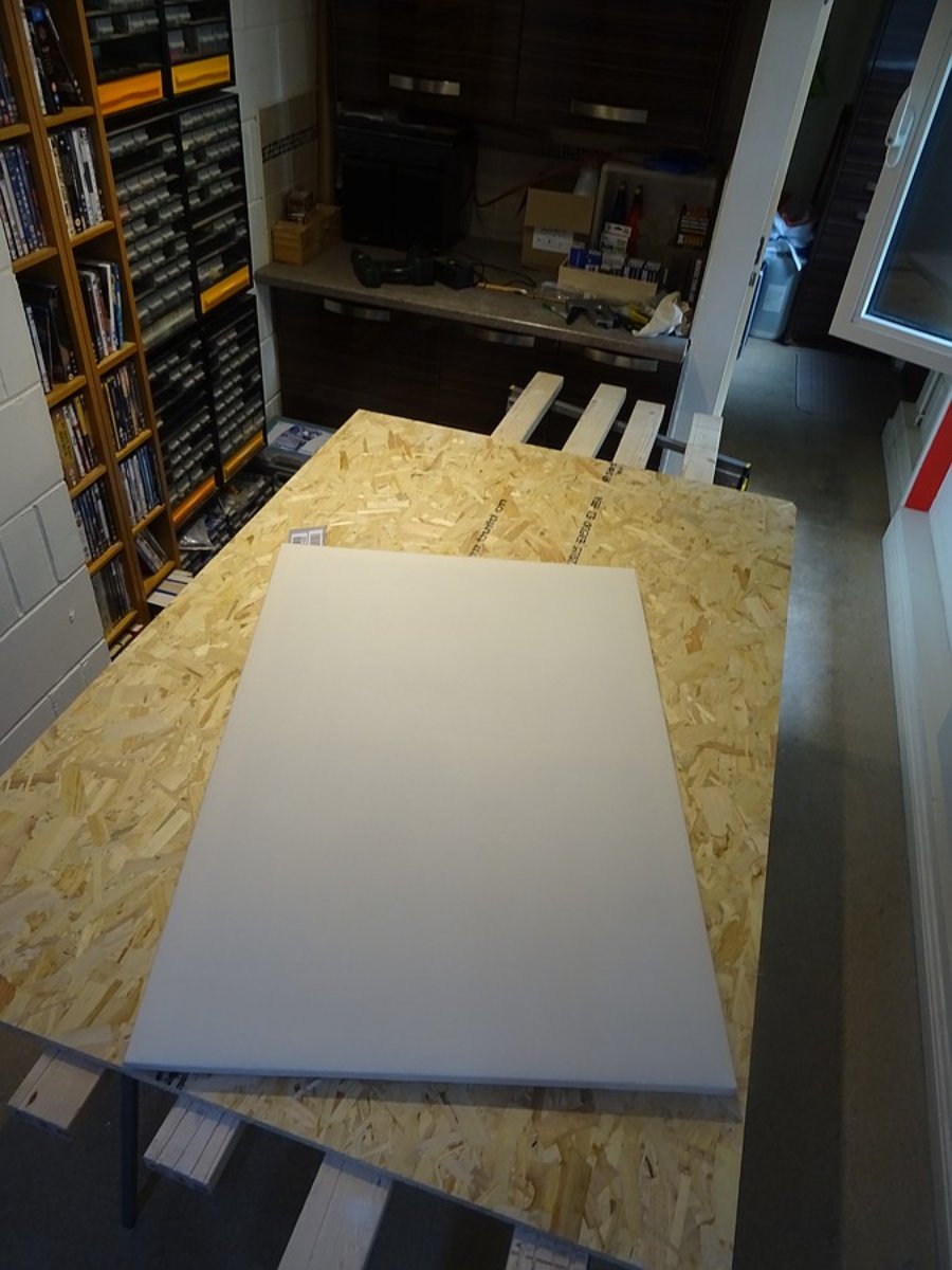 I filled the rear bass traps with light insulation. These are 600mm deep. The insulation is "Knauf Insulation Earthwool Combi-Cut Loft Floor Insulation Roll 44 170mm". There will also be another row of 1200x600mm bass traps on the sloping wall when finished.