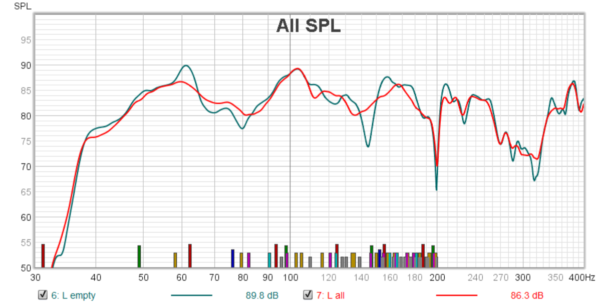 It is doing a remarkable job with even some effect down to 40Hz. It absolutely slays the secondary length mode around 60Hz. 50Hz is pretty much untouched but that is to be expected as it is the primary width mode.