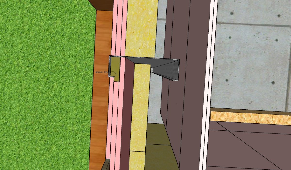 • From the pictures you can see that the outer layer of the outer leaf ply/fyrchek butts up against the flange side of the C-section steel column. (In practice, I will be running a layer of sealant between the two).