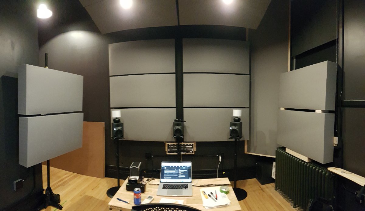 Work / life update. Right around late November 2020 a cultural centre and performance venue where I am technical director received a sizeable grant to build a 5.1 post production audio and video post production and live control room. So since December 2020 I have been very busy crash designing and then building a new room in a 100+ year old heritage building... Lots of budget, little time and it turned out really great. One of these days I will post a photo journal of this build. Oh, and not to mention a brand new Stagelam floor (90 sheets worth) as well as a 22' perforated motorized projection surface in the main performance space. Very busy!... Anyway here are a few pictures of that build. Sorry about the 90deg rotation, I dont know how to fix that. The source files are not 90 deg rotated.