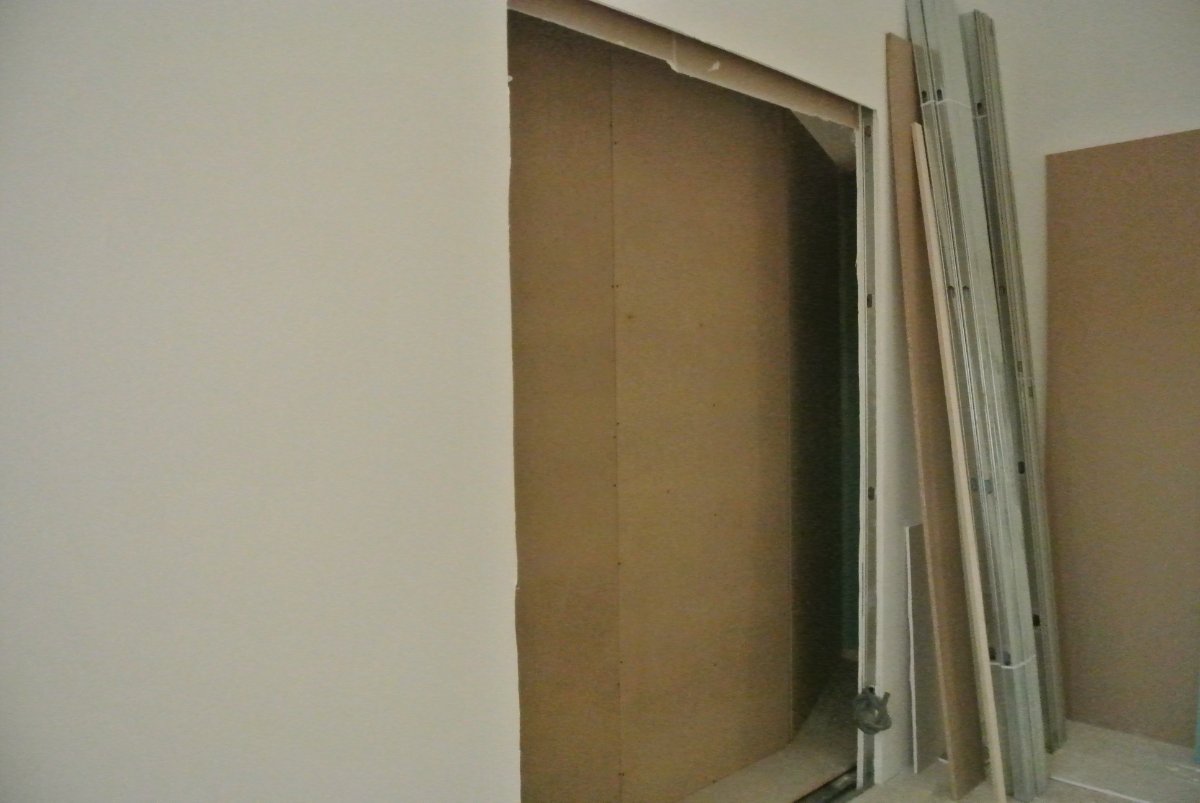 The sand filled wall is hollow blocks faced with MDF?