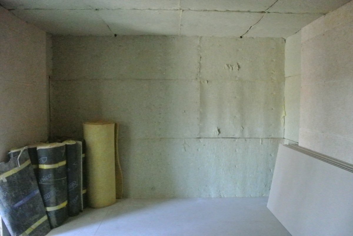 The front wall is only layers of chipboard with a 5cm gap filled with sand. Back board is covered in dead sheets as are the speaker enclosures.