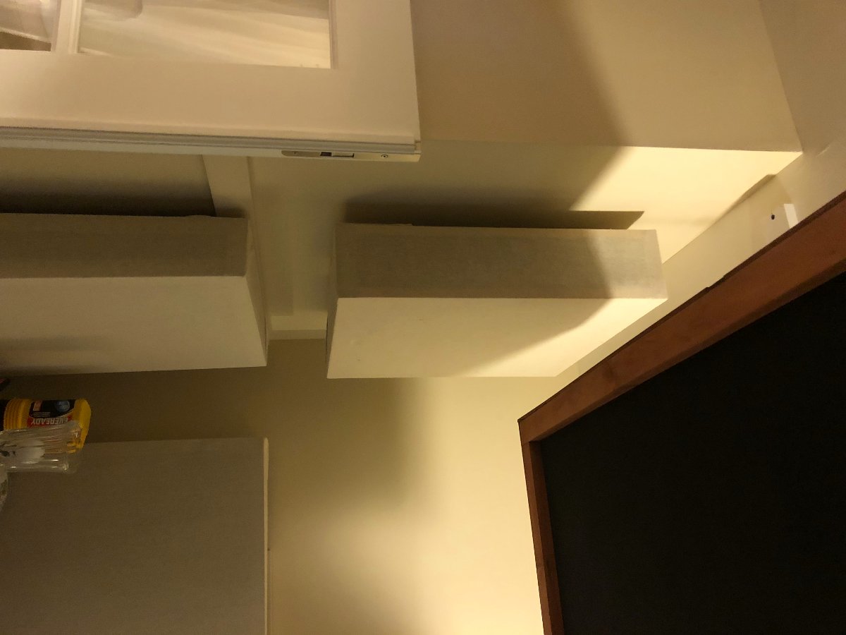 The other panel for above the French doors is ready. I have about 4 different methods/ways to use installing up in the ceiling [plastic anchors, butterfly bolts, screw-in hooks or eyebolts.