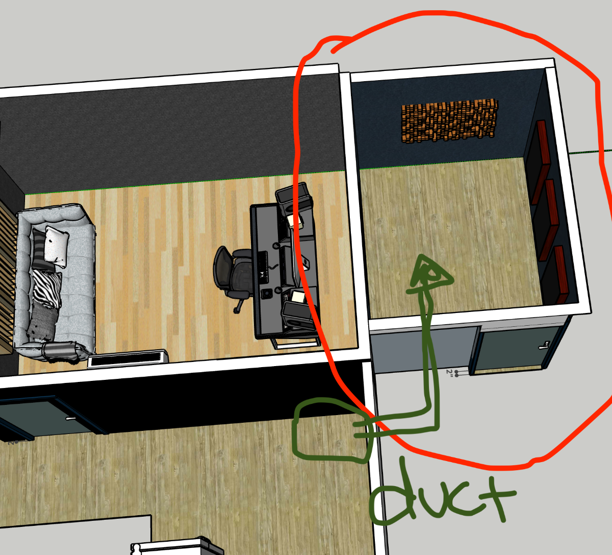 Thanks a lot Gullfo, that's a great idea! However I still need to send heat/cool air to the vocal booth, and for that one I have decided to use the central air since it was easy to get a duct going into the vocal booth. What I am asking for help, is how to figure the Gregwor plan (x,y and as Stuart has mentioned the 'z') so I can build one. Thanks again!