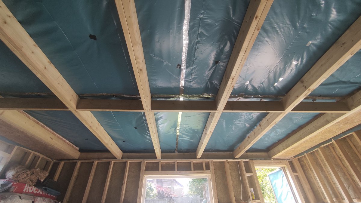 Outer leaf ceiling insulation and moisture barrier.