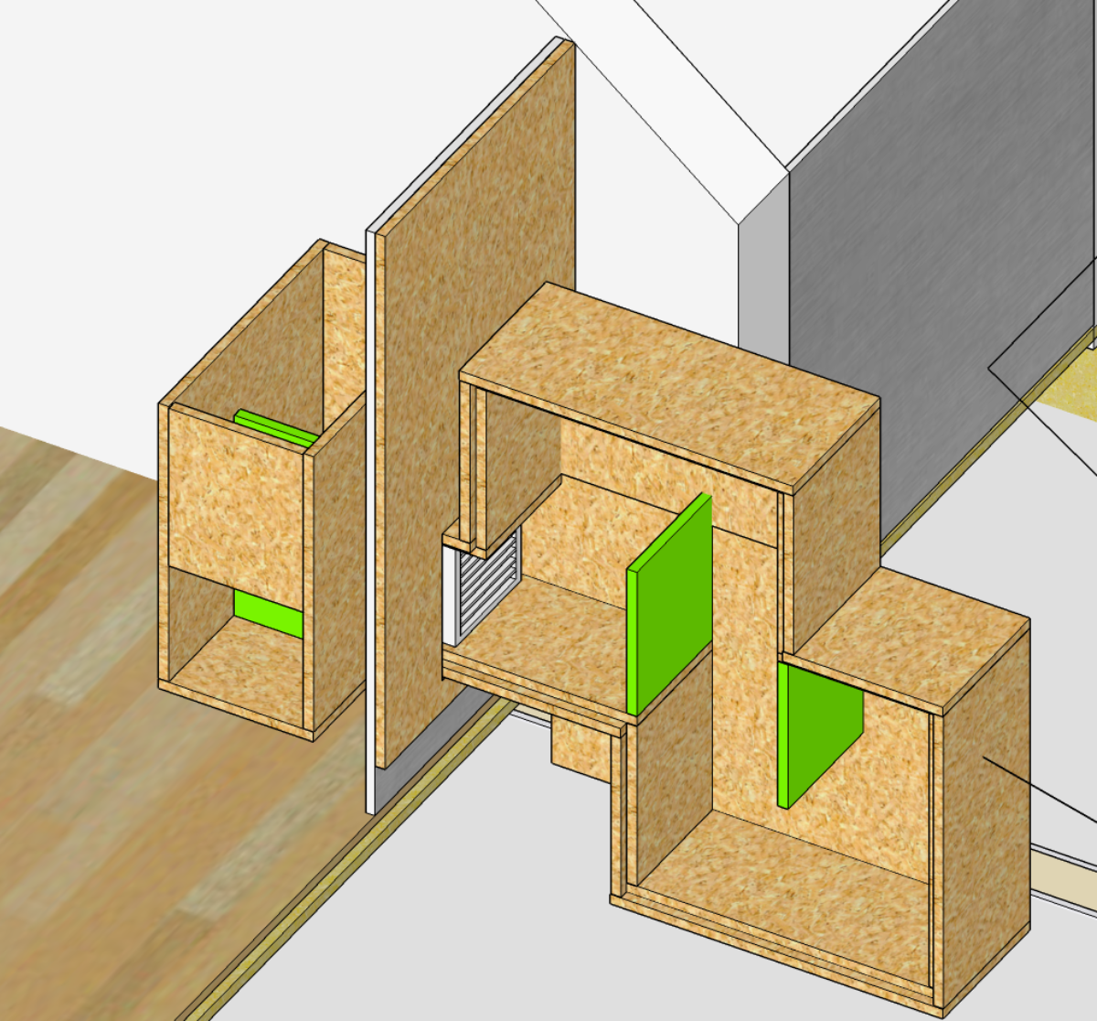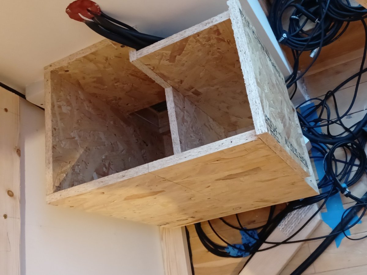 I've built the shell of the ventilation supply plenum from 18mm OSB and done a test fit.