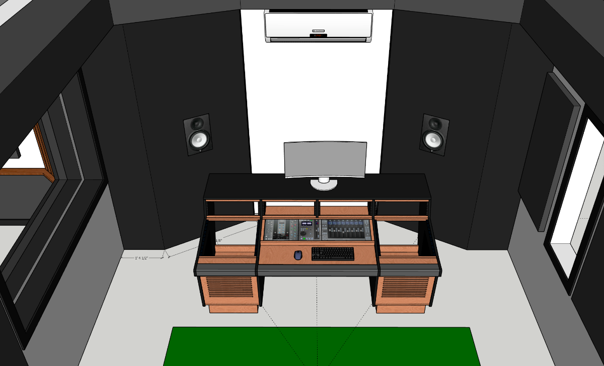 gullfo wrote:Source of the post yes, that would work.consider building across the front another unit for absorption there leaving a few feet for the AC unit. depending o nthe room modes, that front unit could become a membrane trap. meanwhile it will help with reflections off the front of the desk - which is why your lower parts of the soffits will be absorptive as well