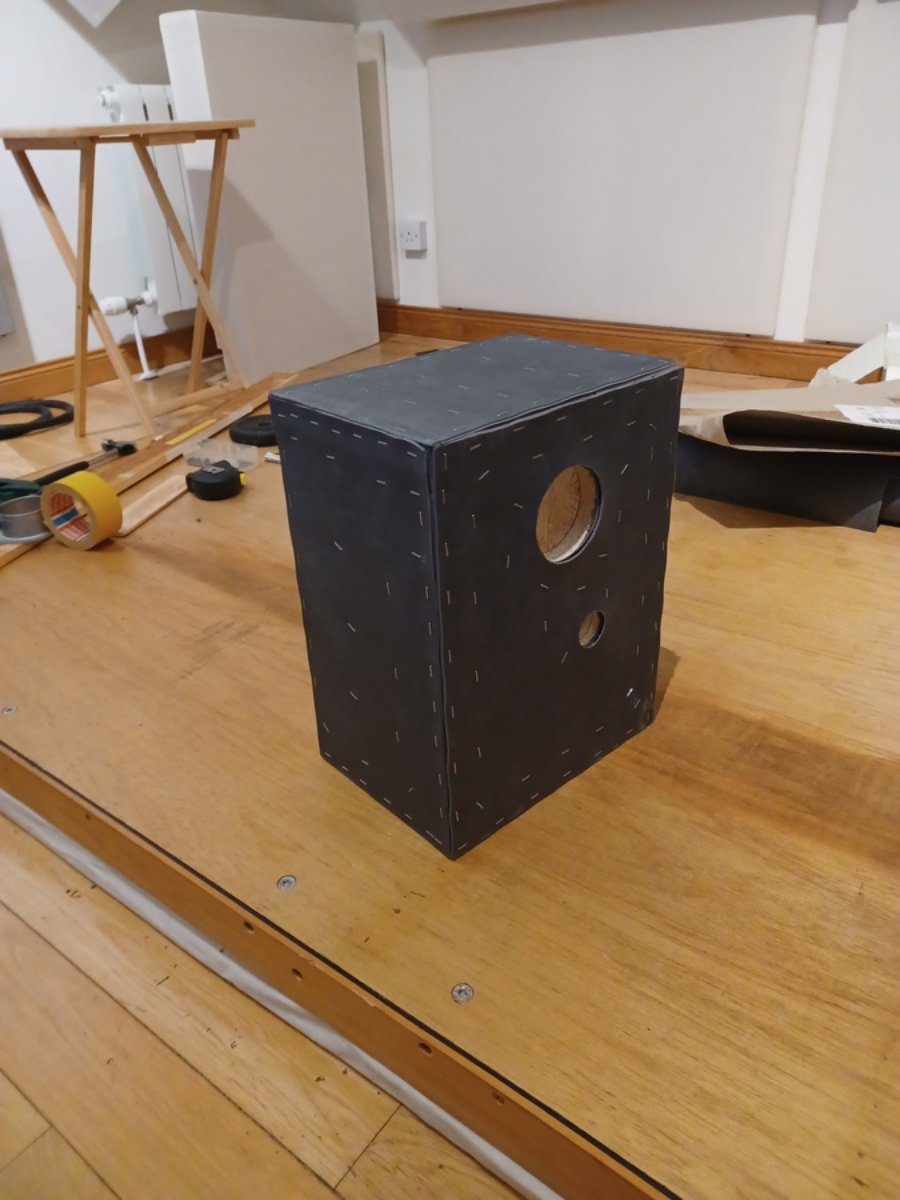 Getting the speaker boxes together. As Stuart suggested, I have some cooker hood insulation to line the inside of those to reduce resonances within the box. Fitting that will be fore another day though.
