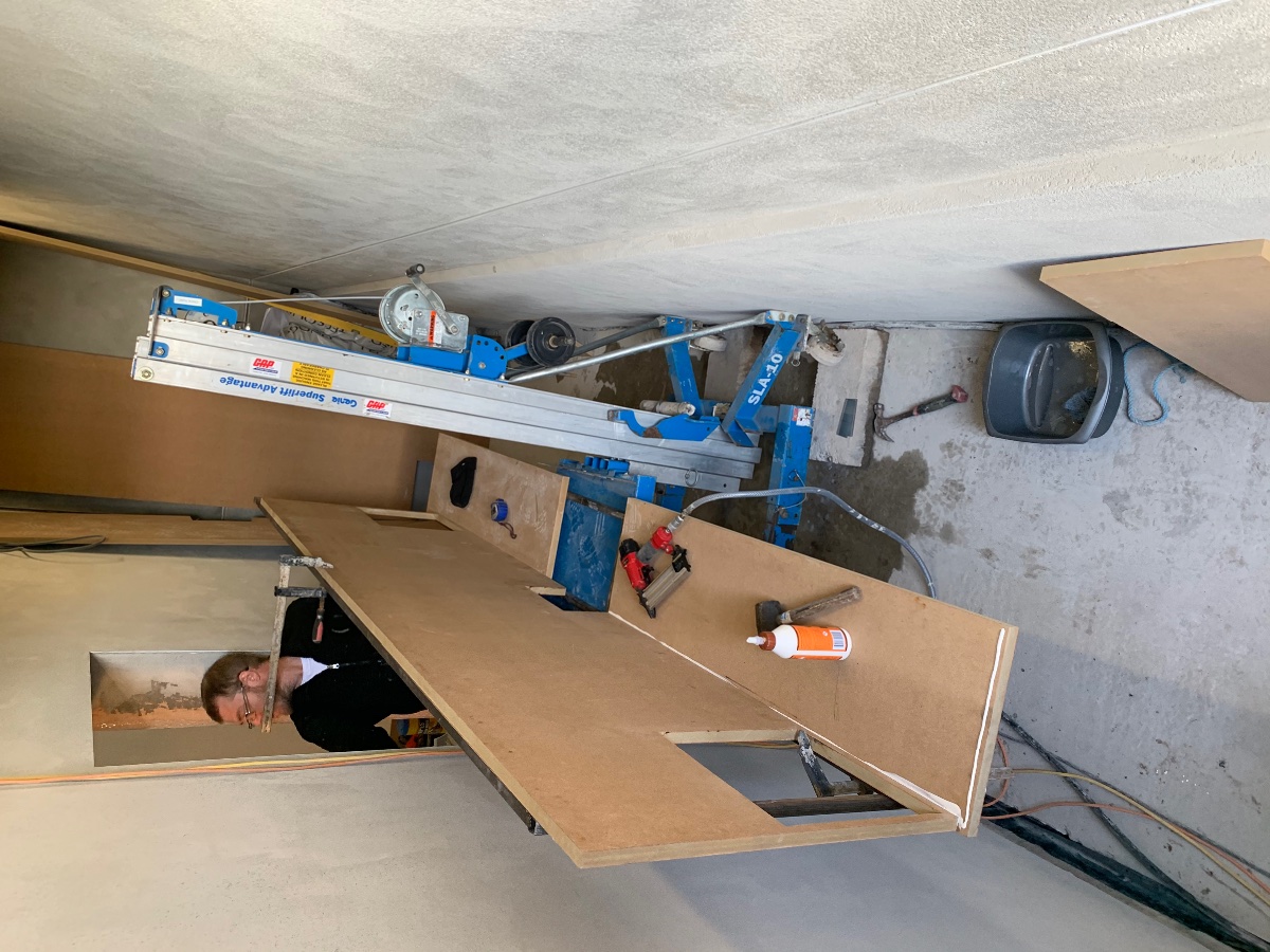 We quickly realised that the metal frame had better be the other way around to aid tipping and pulling it between the ceilings.