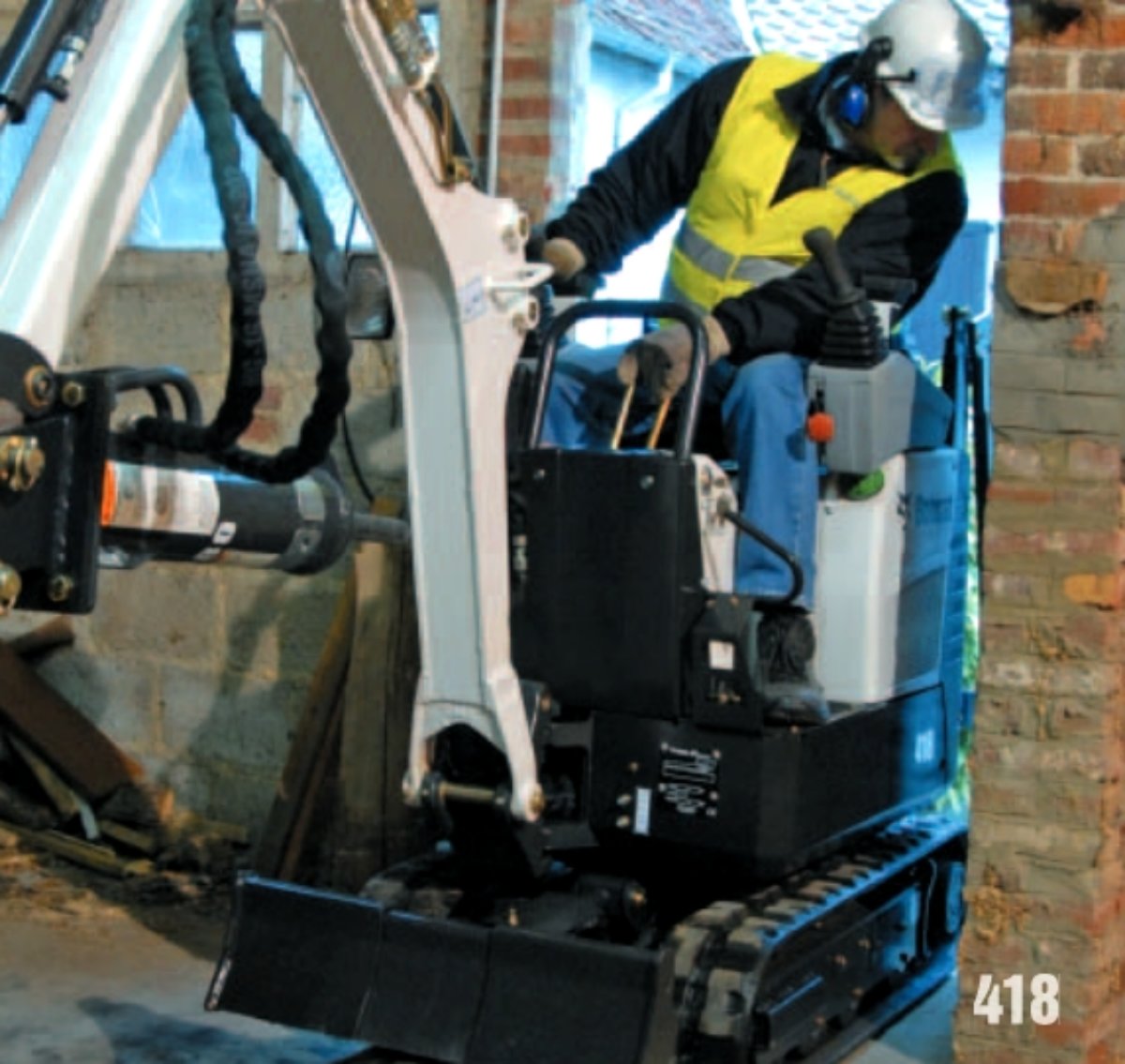 Some diggers are quite narrow, and should be able to get through. Some even have wheels or tracks that can be sort of "retracted" inwards to get them through tight spaces, then "extended" out again for better stability during the actual work. Here's a tracked one I have seen that can get through a standard doorway:If not it’ll be taking a mini digger through the house and hiring some builders with a narrow wheelbarrow!