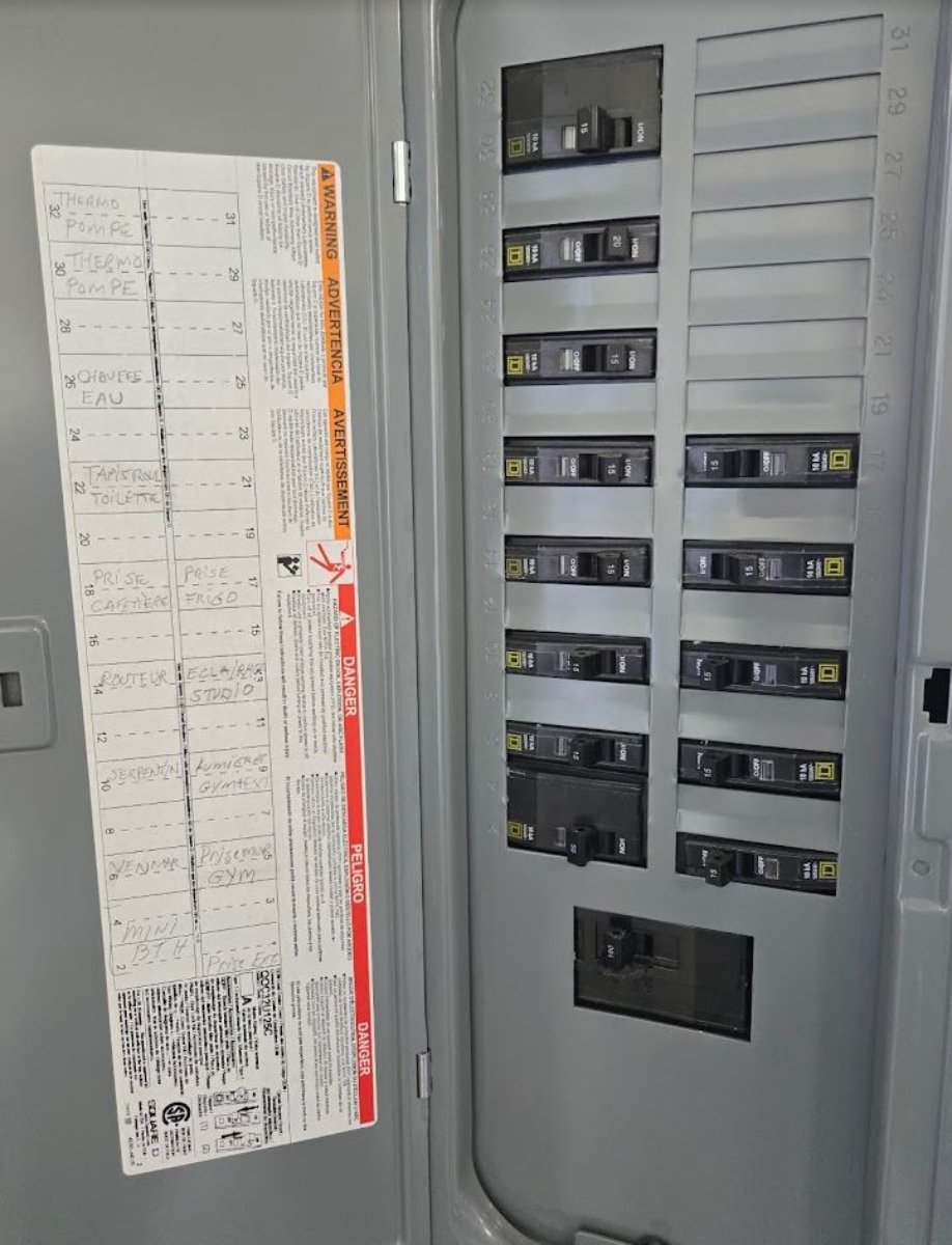 My electrical panel has two phases. It's connected to the main electrical panel of the house, which has a ground connection. So far, I've connected all the circuits (breakers) to the same phase (lighting and outlets in the gym, the ERV unit, water heater, etc.). There are only two exceptions: the 50A circuit breaker for the radiant floor heating system and the dual 15A circuit breaker for the mini-split air conditioner. For the studio, the lighting and two accessory outlets will also be on this phase. All other outlets in the studio will be on the other phase and will be used for the computer, monitors, speakers, synthesizers, console, rack-mounted equipment, amplifiers, stereo system, turntable, etc.