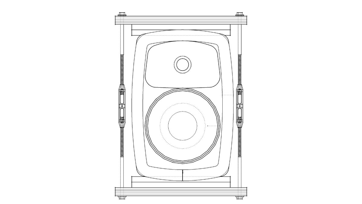 I'm aware that accessing the rear bolts to remove the speaker for servicing etc. could be tricky once the box is embedded in the soffit. Therefore I'll built the structure to allow some speaker box rotation once the lower bolt has been loosed to give easy access when the soffit bezel is removed.