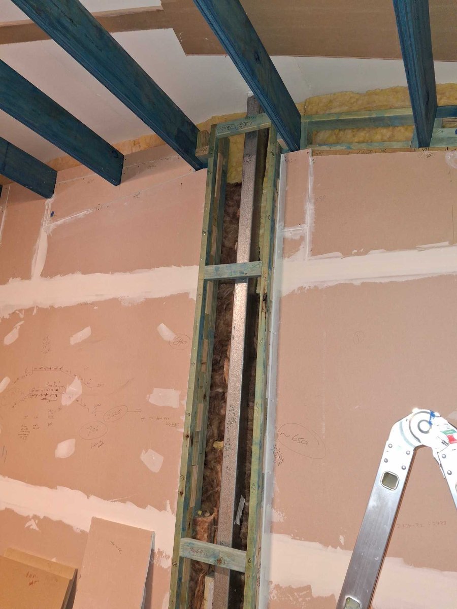 While this issue has been solved, I’ve burned a lot of time solving it and executing those plans, whereas had I designed it that way, I’d have run the C section through to the wall frame before sheeting and avoided the work-arounds on the wall behind the silencer to fit the plenums. Solved – but I reckon it cost me 2 months in extra work time.