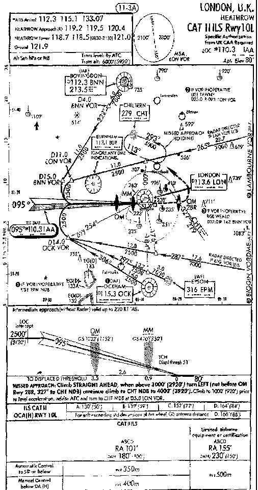 Approach plate for London, Runway 10L, Category II ILS Approach: