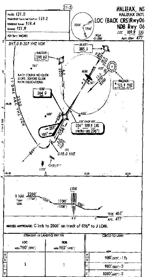 Approach plate for Halifax, Runway 06, Back Course Approach: