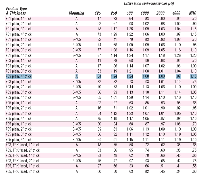 Therefore probably the best practical porous material for low frequency and overall sound absorption has airflow resistivity of somewhere between 20 and 100 (?) kPa*s/m2 and some serious thickness.
