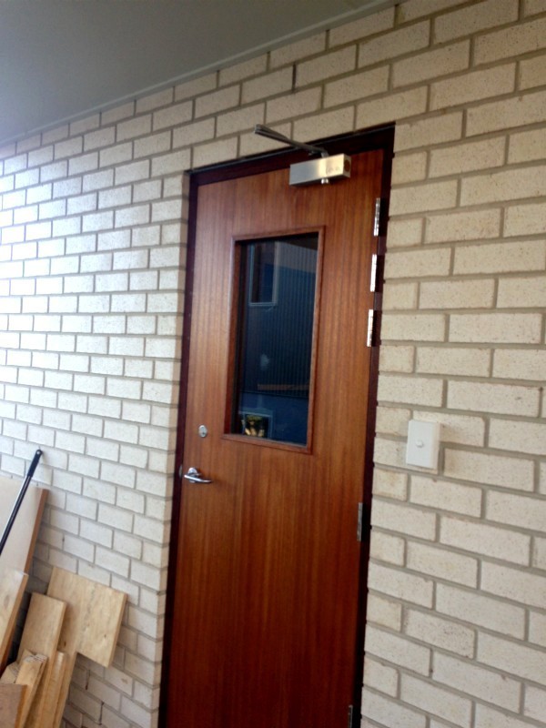 A word about those automatic door closers: you need them! These doors are heavy (100 kg / 220 pounds each!), and trying to close them by hand would slam them into the frames and jambs every time, even if you try not to, eventually causing things to move, break the seal, or fail. A door closer does the job of closing them slowly and gently, then applies pressure to keep the seals properly compressed, without needing a latch.