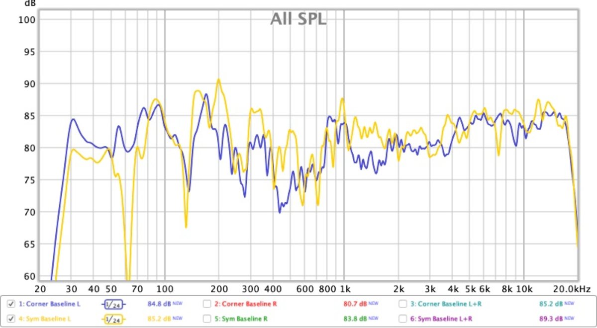 The corner position seemed to raise the DB level by 1-2 db so I had to re-calibrate REW to compensate for this.