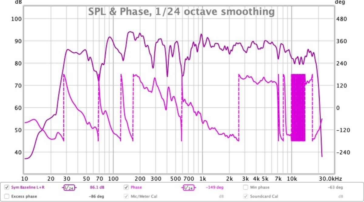 But the REW data shows a worrying dip around 9.5k that seems to be a phase null between L + R as it does not appear on the individual L and R sweeps.