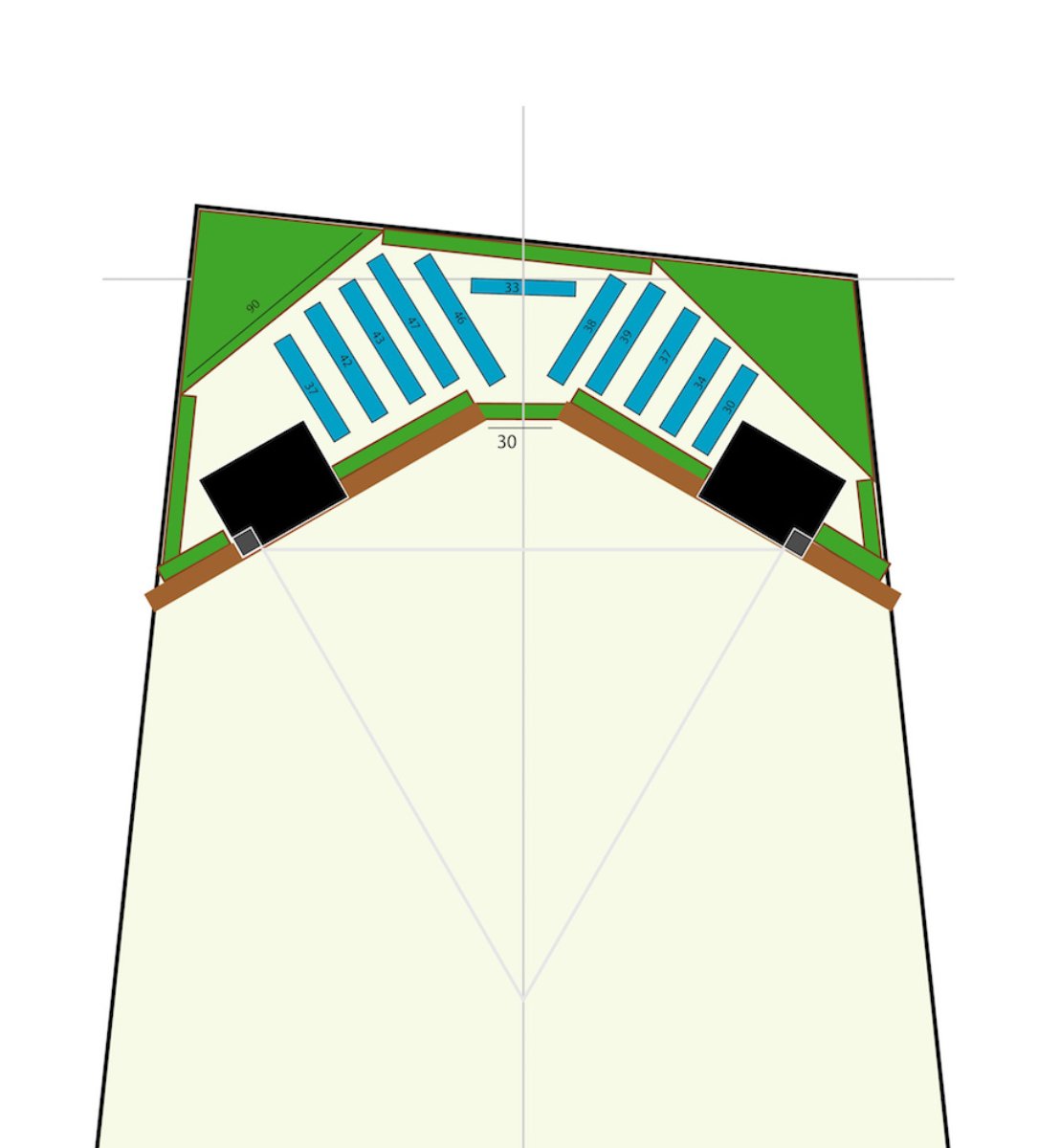 ericwisgikl wrote:Source of the post I put your measurements into Sketchup, traced side walls lines till they meet, measured the angle, which is about 11.5º, and traced a line al 5.75º, the half of them both. Then I took measurements from right side wall to this centre line, and that is your new center.