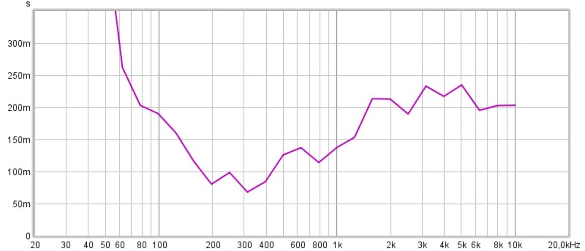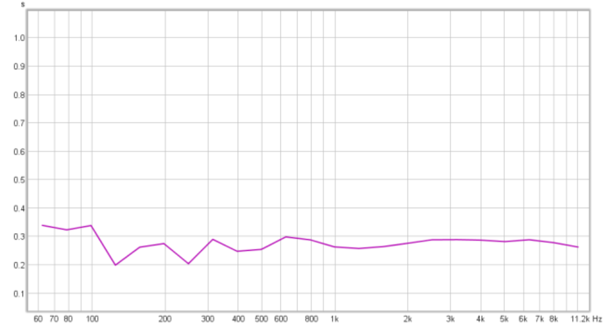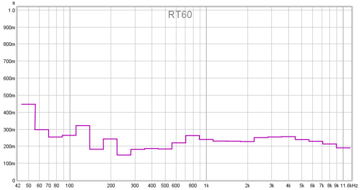 I am attaching the measurements of the t30, as you can see the frequencies around 200 -300 hz have a decay time around 70ms. Do you think that if I make the decay time flat around 70 ms it will sound good or would you advise me to increase the decay time?
