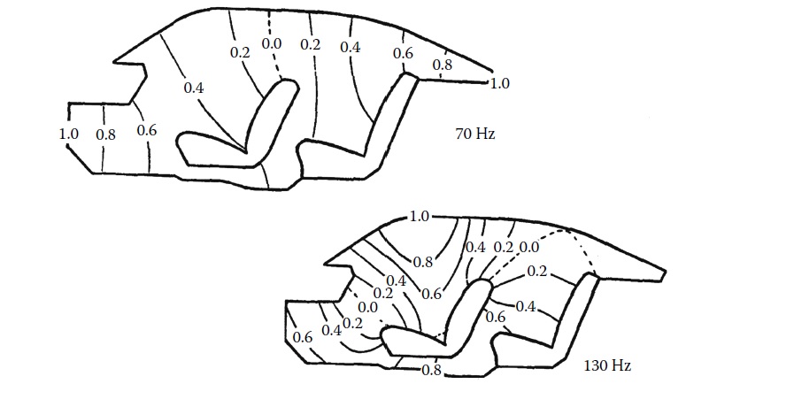 Even worse: once you stop playing that B# on the bass (or any other note that happens to coincide with a room mode), the room will carry on playing it for a while (maybe up to a second or so, in some cases), because the standing wave has "stored the energy" of that tone, and it continues to release that energy again is the wave bounces around the room, back and forth, following the same fixed path each time, until it eventually dies away. That is VERY clearly not good for a control room! You don't want the music to carry on playing after the musician or the speaker stops making it! This is why some people think that it would be good to "get rid of the modes".... but that's not true.
