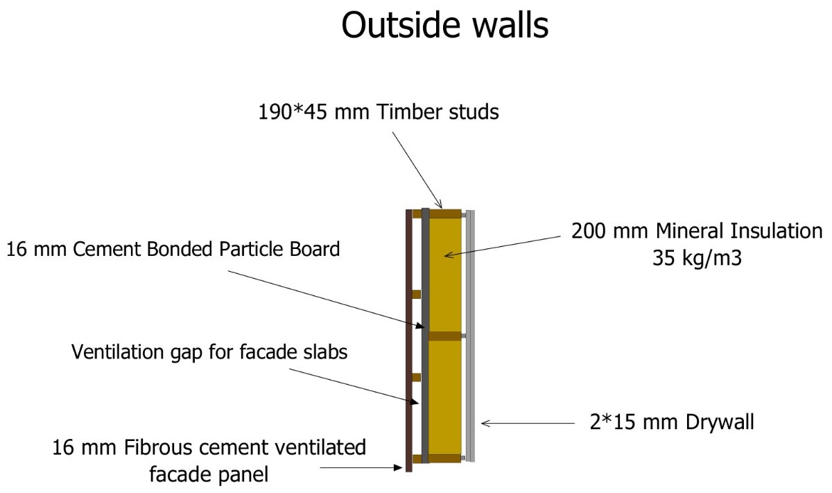 I consulted with the builder and came to the conclusion that we have the opportunity to make a rigid lining under the ventilated facade. I have several options for how to make it. These are OSB-3, Gyprok GTS-9, Isoplaat fibreboards or Cement Bonded Particle Board (https://www.eltomation.com/eng/our-prod ... bpb-plant/ - нere you can see their parameters). For now, I'm leaning towards the latter option, since these boards are very heavy, twice as heavy as drywall. And one such 16 mm plate has the weight of two 15 mm drywall sheets. It seems to me that this is a good option, since we will have approximately the same mass on both sides of the frame (I do not take into account the weight of fiber cement facade slabs here, because they are with a ventilation gap). But with these plates there is one small problem, during installation it is necessary to make expansion joints between the plates, at least 4 mm. Will there be enough sealant to seal these joints, will it be possible to obtain an airtight surface in this way? I also see that when installing OSB-3 boards, it is also necessary to make expansion joints between the boards. They do not need to be done when using Gyproc GTS-9, but this facade drywall is only 9 mm thick and it will not be easy to use it to gain a mass similar to the inner layer of drywall (it is also very difficult to buy it). What do you think about this? Would a ventilated façade be a problem now (although it looks a lot like a 3-leaf system :cry: )?