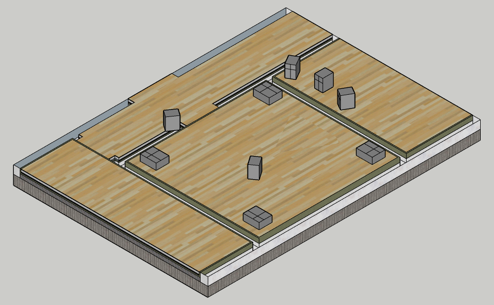 The whole construction thing is totally new to me and I've absolutely no experience in framing. I've done some woodwork in the past (I've build some studio furniture), but building this room will be a total ne level for me. I've read a ton of material and watched countless videos regarding this topic, but I guess experience beats knowledge in this case. Never the less did I try to avoid basic mistakes, hopefully. Since we have a woodworking shop at my dayjob (to build prototypes of speaker cabinets), I have access to some expensive tools and even to a 2 x 1 m wood CNC cutter. So, dealing with complex shapes can be easy if I've done everything right acoustically. For all the connection points of the framework I'll use filling compound to prevent the structure from creaking and making resonant noises.
