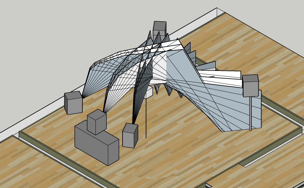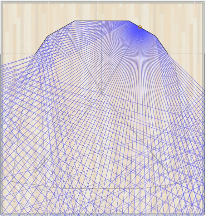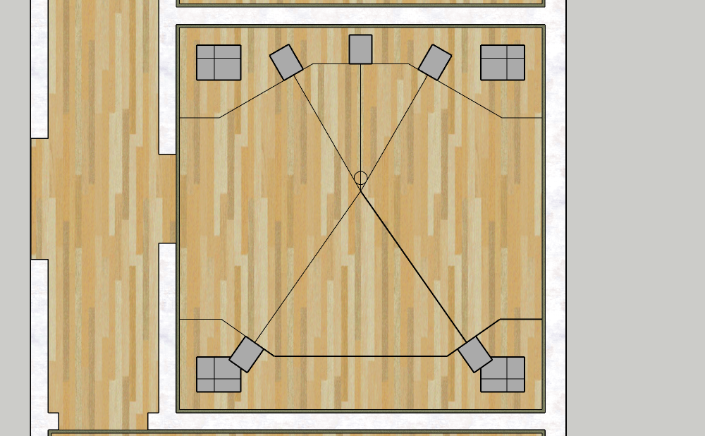 I’ve tried that, and it works for R, L and C, but Lr and Rr are still radiating directly to the opposite baffle: Lr is hitting the R baffle and vice versa. I’m kind of limited regarding Lr and Rr: the more I alter the angels (between 130 and 150° seen from the center axis), the more I will get close to the window with the Rr speaker. This will reduce the amount of space that the baffle could have. And because of that, I lose space for treatment in the back. Also, for best ray trace result, there has to be free space between the L and C baffle and the C and R baffle. So, maybe I should use your rounded slats solution. Is there some literature out there about it? I have an Idea how this should work but don’t know the math behind it...