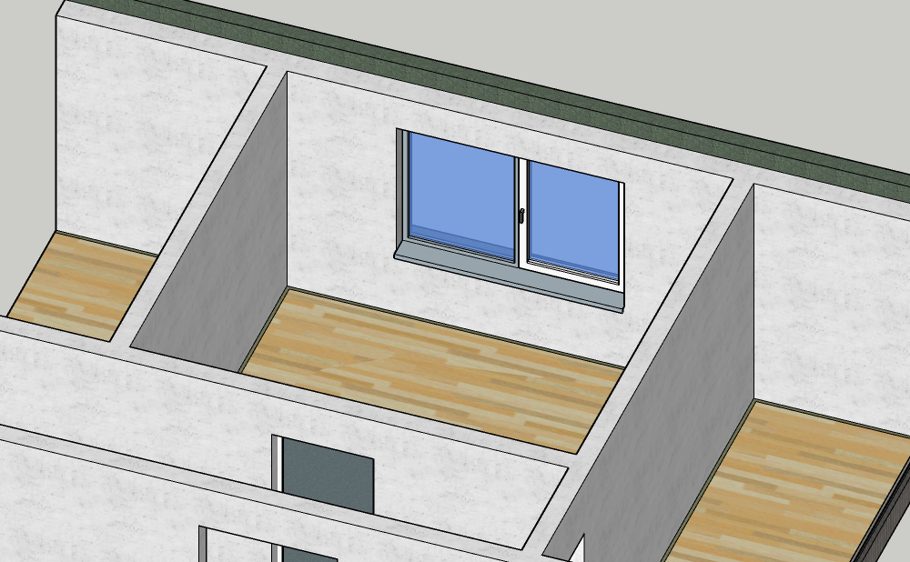 On the other side of the room, there is the window. As stated in the chapter "the room", only one of the two frames of the window is intended to be open, the other one is just window glass in a frame. My Idea is to cover the non-open able window and only use the window, which I'm able to open to let the light and fresh air in. The other window will be covered by a slat resonator, which also uses the volume of the window sill. To prevent a vented connection between the slat resonators behind the reflection free zone baffle and the volume for the open-able window, both sides will be sealed with memory foam again.