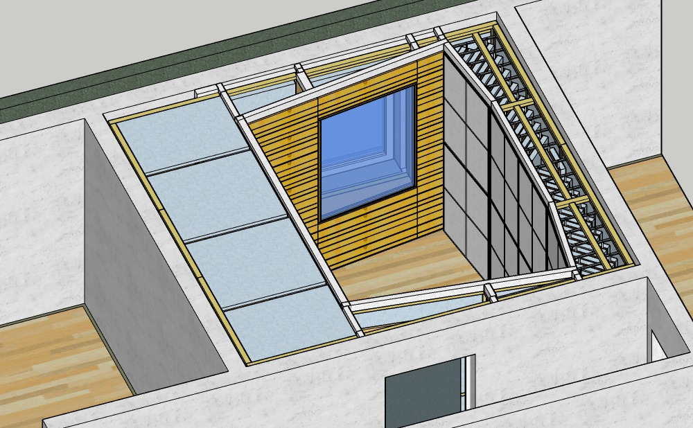 I want to build a second “false” window in front of the "real" window. This window will just be one layer of 10 cm glass to keep the reflection free zone consistent. Main purpose is to let the light and fresh air in. In the case of the window, I have basically the same problem as I have with the window-sided slat resonator: because of the windows still, it is challenging to seal the space behind the slat resonator perfectly.