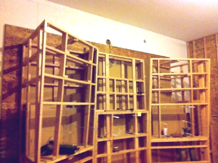 ! The front baffle will be bigger again, and the Lr and Rr won’t even have a baffle, just false walls around them, so the reflective surface is only the speaker itself. The baffle around the L, C and R speakers are enlarged again to the whole front, but there is space underneath and above for the Hangers to work properly and for the speaker ventilation. Underneath I have a 32cm slot, and above a 42cm slot. Also, with the new framework introduced in my last post, there is a false wall for the bass hanger. I hope this will be okay and the bass hangers will work. Here, I would like to have some feedback.