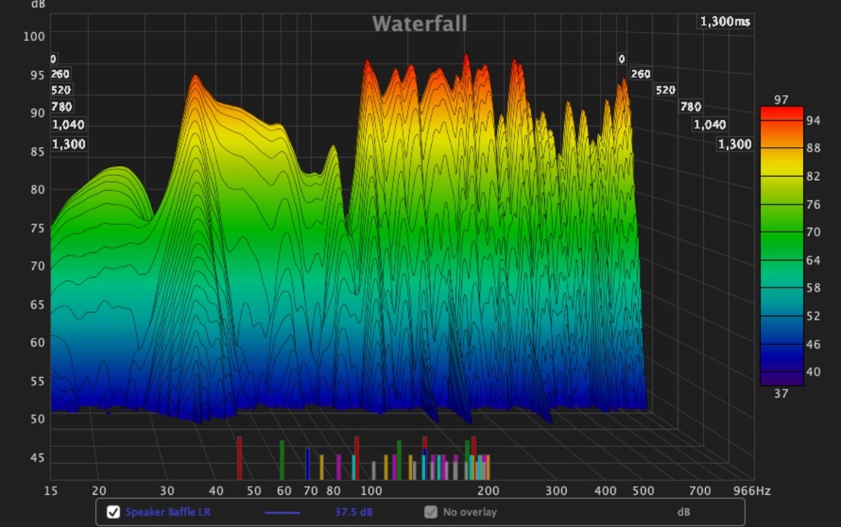 There was a huge hole in the lower midrange reverberation time while in the lows there was a weird rise of about 100ms (!!) with no real improvement anywhere.