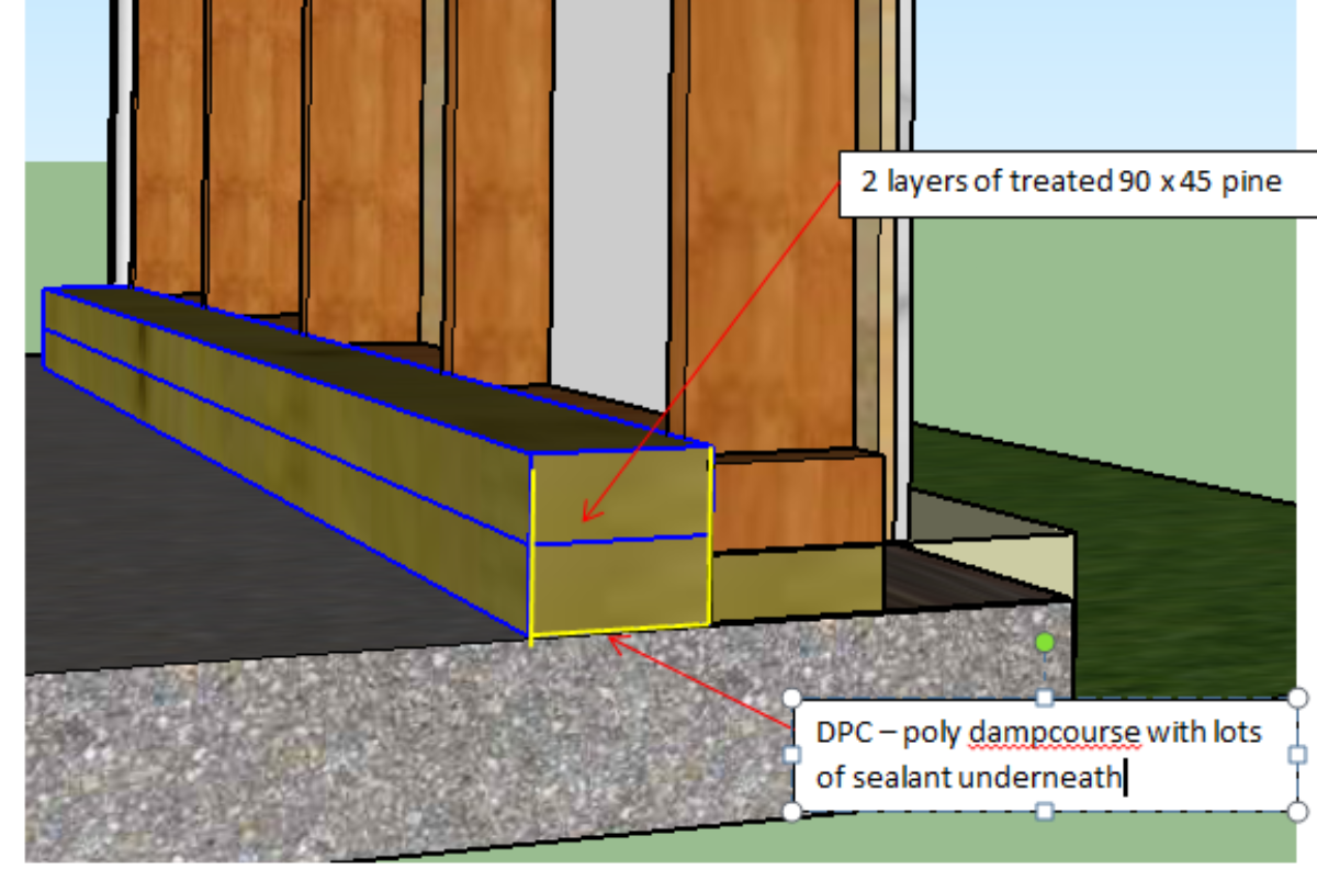 Unless I’ve misinterpreted something – it all hangs together EXCEPT for the weak point at the base. The damp course and weatherproofing has not been designed or implemented to the strict standards for isolation because I thought my isolation would begin from inside the outer frame.