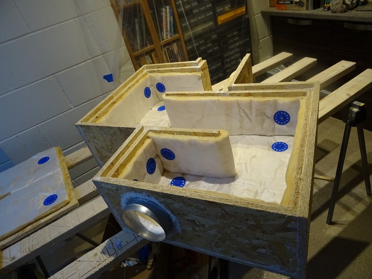 And there are so many of these lines several times on every join to do the stepped "bank vault" seal properly. Three I think, for the two layers. The combined length of seams on the silencers and built in bass traps must be epic. I anticipated using a lot of sealant, but not that much!