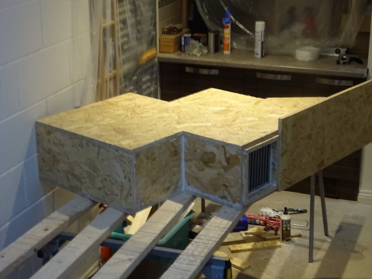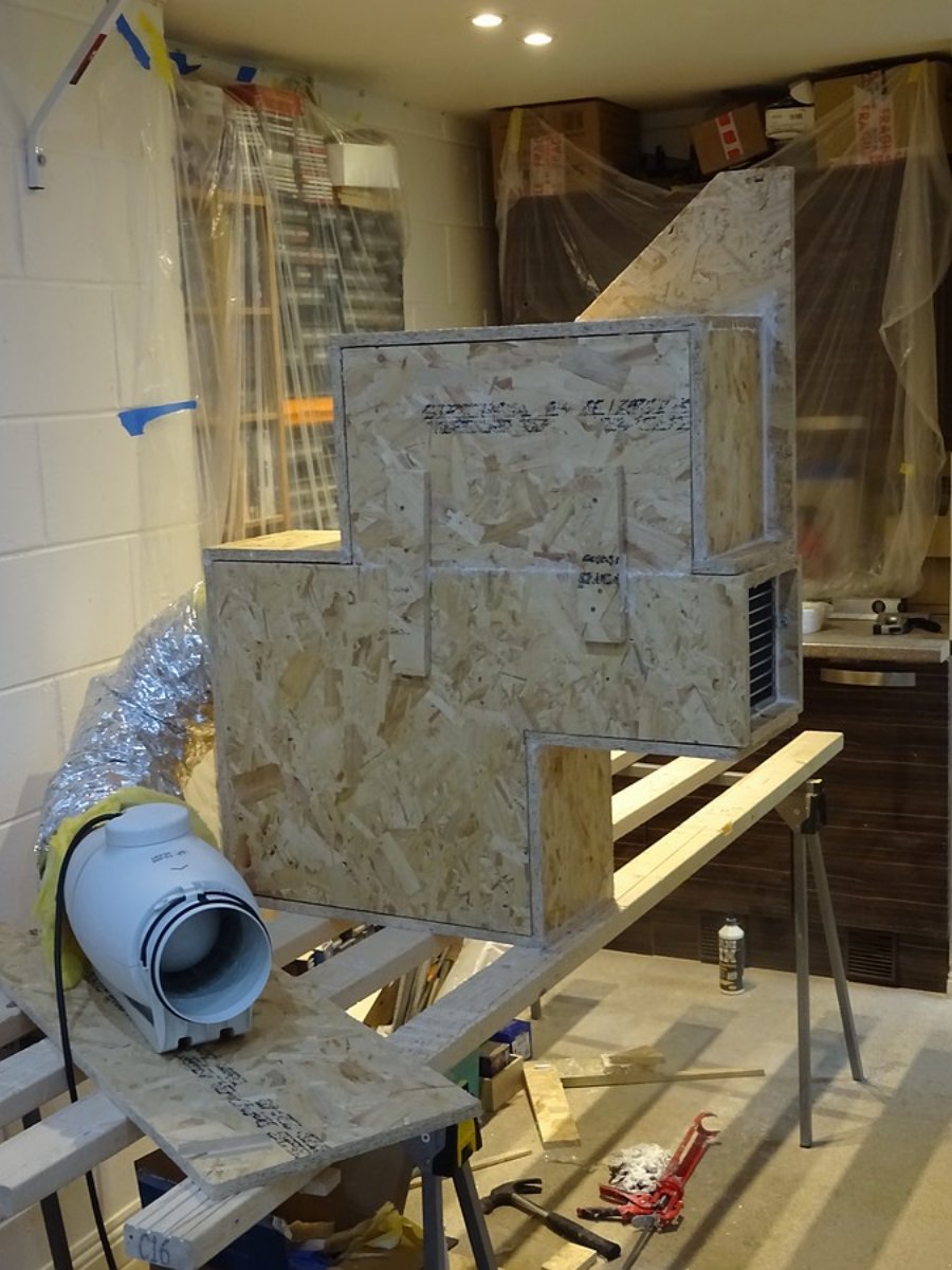 Just temporary bracing to test and allow fitting of the proper OSB layer. I'll cut the bottom half to go around the grille, and the top half to go above that.