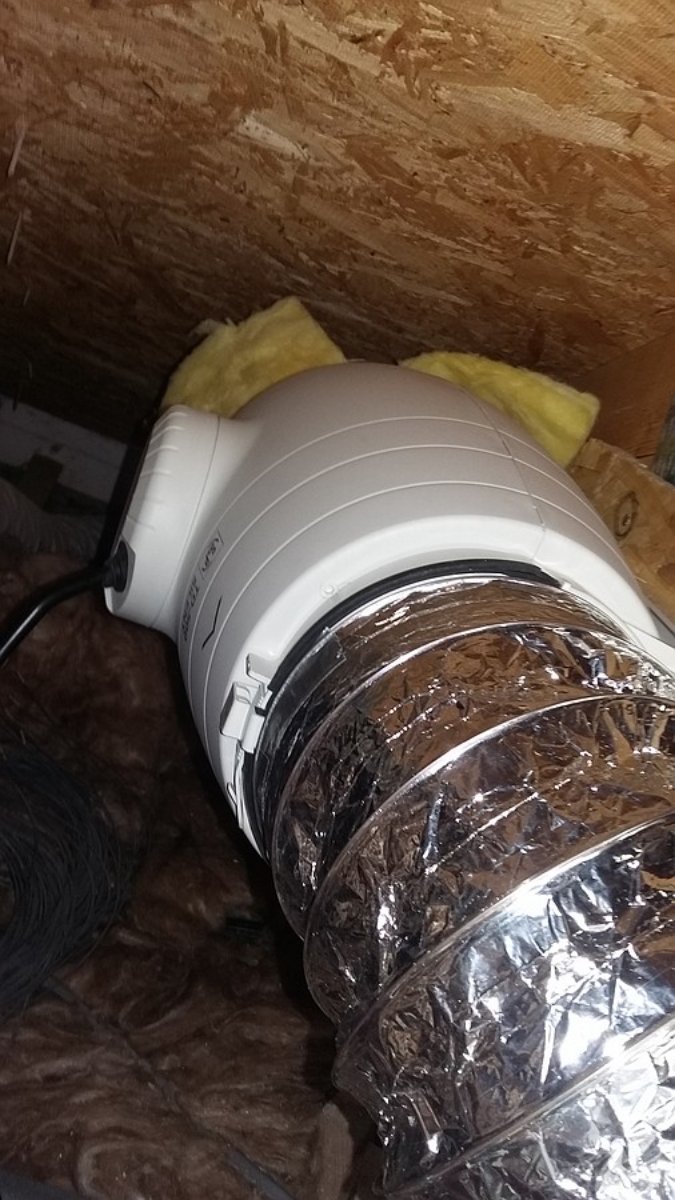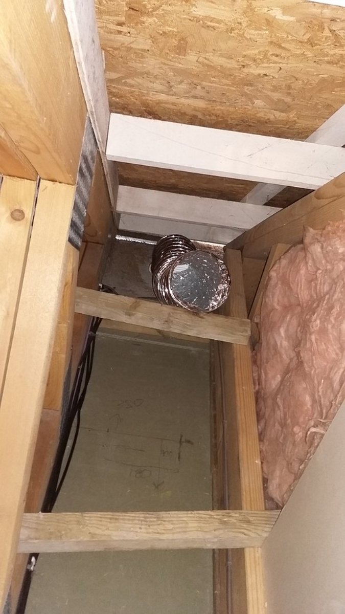 I tidied up a bit in those eaves and put as much insulation as possible in there, tested the fan, then closed the hatch.