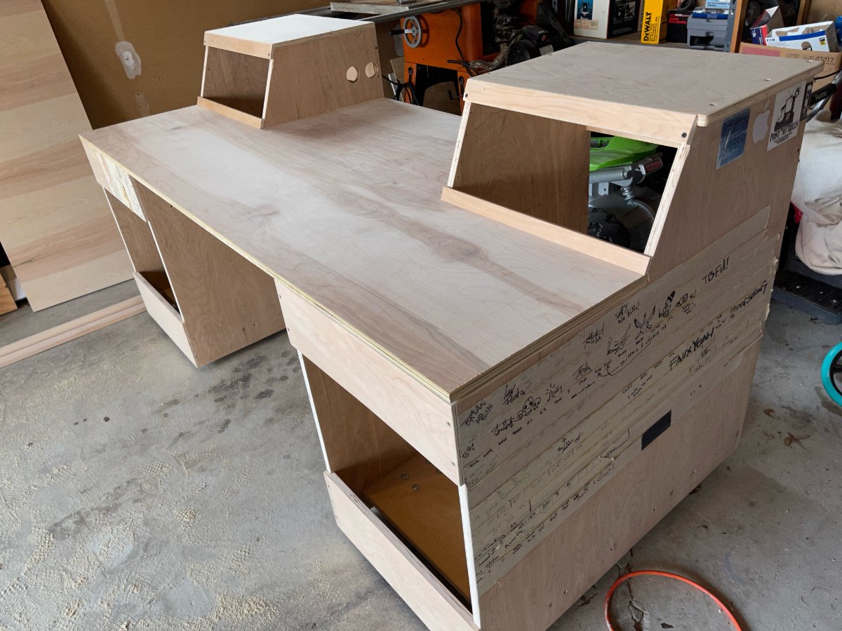 While it's only tangentially related to my studio, I pulled the old console desk out of the flooded basement and tried to reclaim as much wood as I can. While I probably wont go back to a console, I'm really happy with how my "Reclaimed" desk is turning out. The only things left are to stain, and I have 8u space in the bottom of the racks, going to change that to 10u in each side. Also want to add a monitor shelf and some cable channel on the back to hide all the wiring.