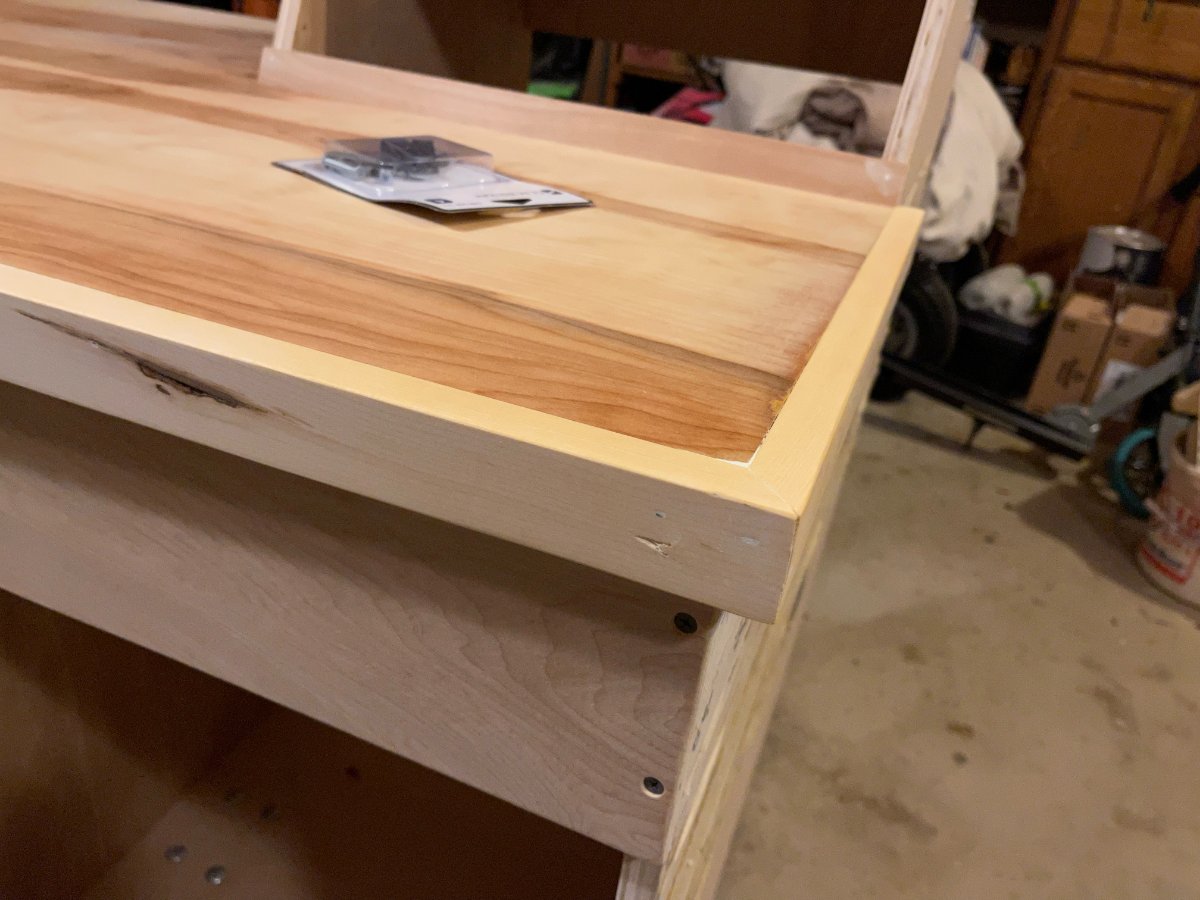 Yep, Thanks! You guessed it right. I clamped it all together then used glue and finish nails to secure it. I went over it with some wood filler to hide the nails and filled any gaps in the seam. I like the "industrial" look of the screw heads on the cabinet, but I wanted the top to look very clean. Overall I was just trying to hide as much of the plywood end grain as possible.
