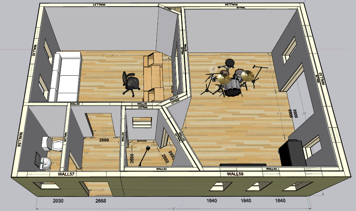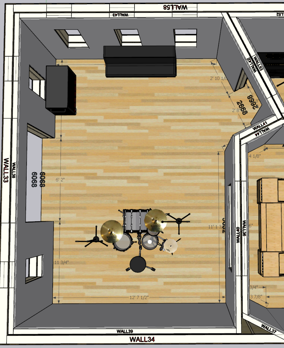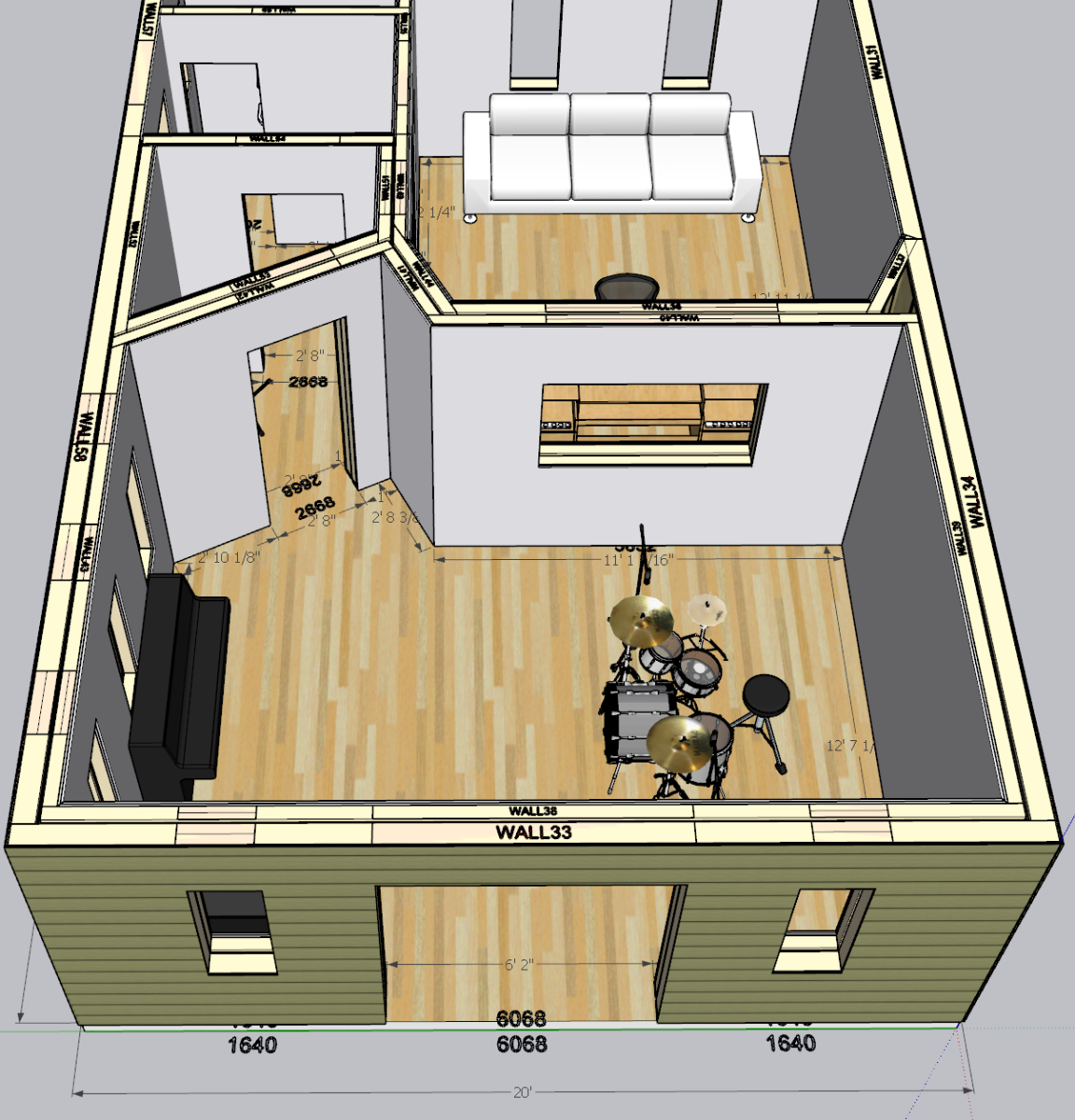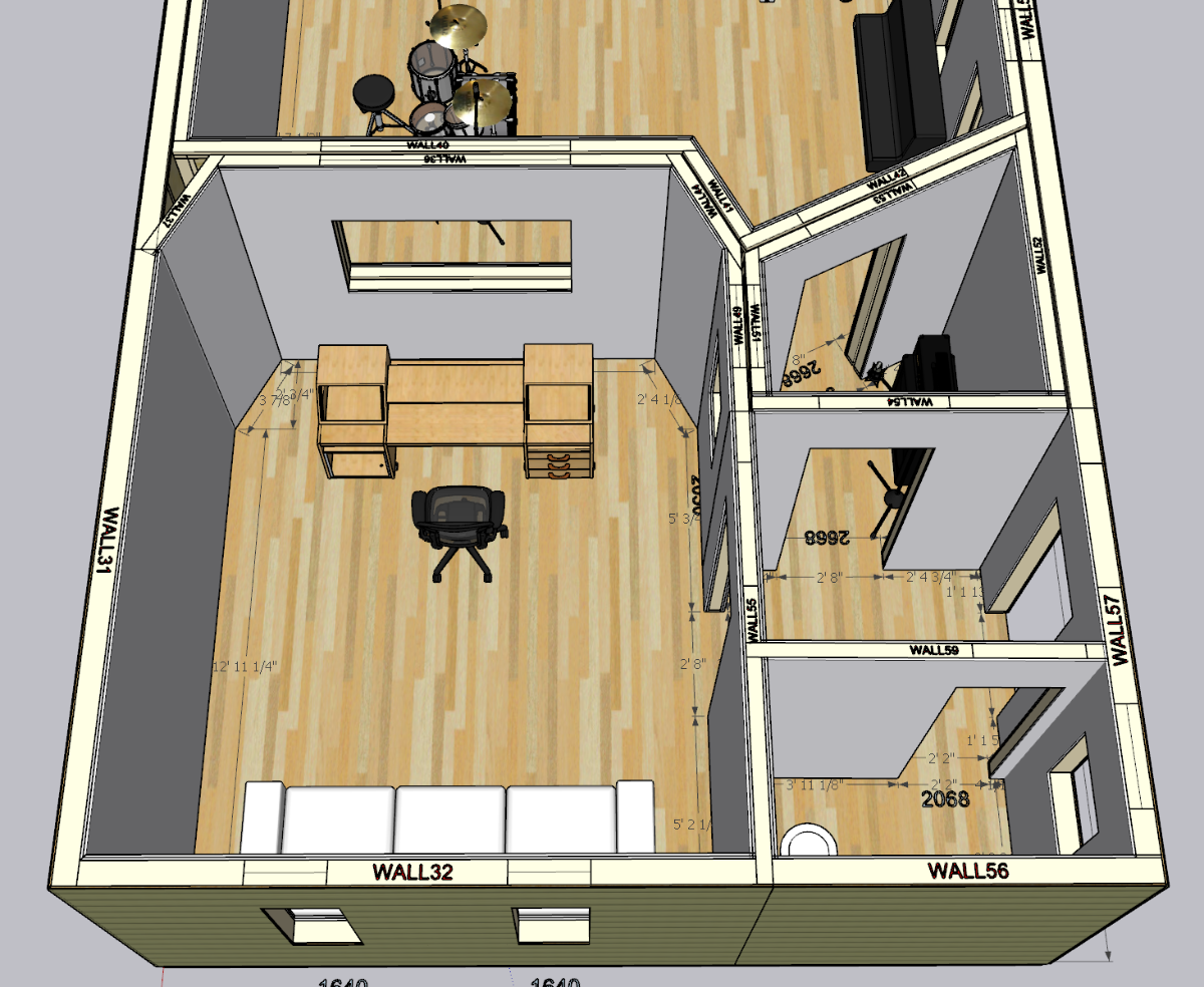 I break ground before the fall, will start a build thread! Thanks for all the help so far. The treatment in these sketchups isnt final. I plan to do a 2 foot deep inside out wall at the rear of the studio that will be a massive bass trap. The front walls by the window into the live room will also be inside out walls with slat resonators. The small iso booth will be fully inside out as well. there will be glass doors between the live room, the air lock, and the control room. This will act as a make shift iso booth so bandmates can see each other if we need some isolation. Otherwise I am super excited to start building! I have a nice HVAC ducted minisplit system going in with a dedicated air changer. Cant wait to get building!