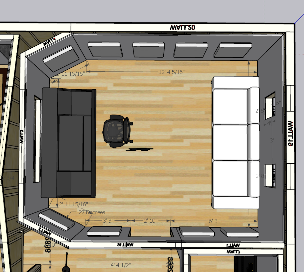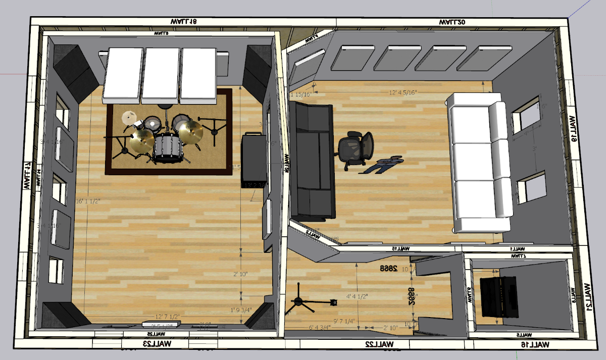Thanks Glenn. I was copying an architecture for a similar sized space "Gray Box Studios, Nashville" that I really like.