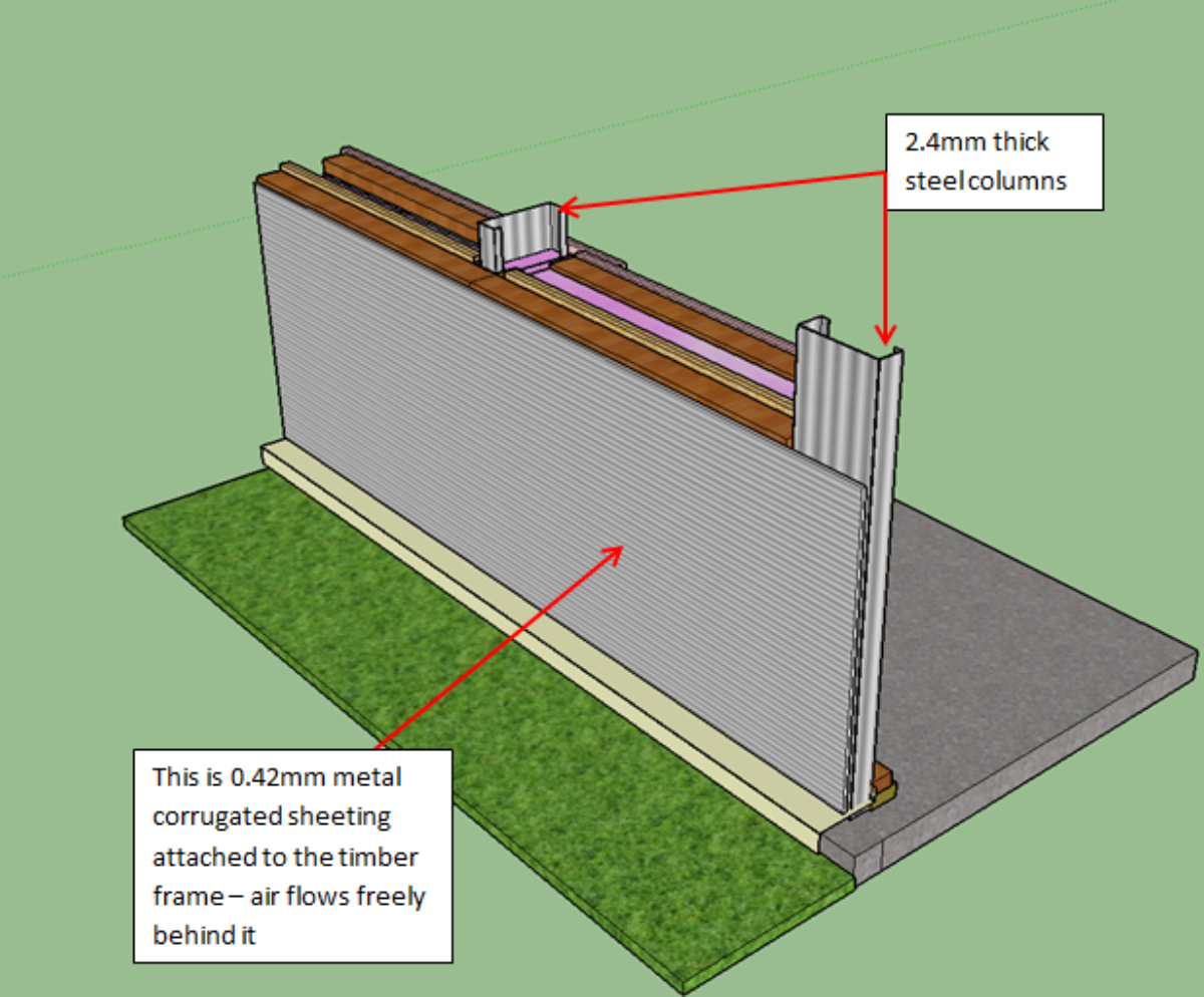 4. The insulation I’m using behind the metal sheet cladding has a lower GFR than I was proposing in earlier posts – I’d stuffed up the price comparison so the Bradford Soundscreen I was looking at will have to wait until its broadband absorption time.