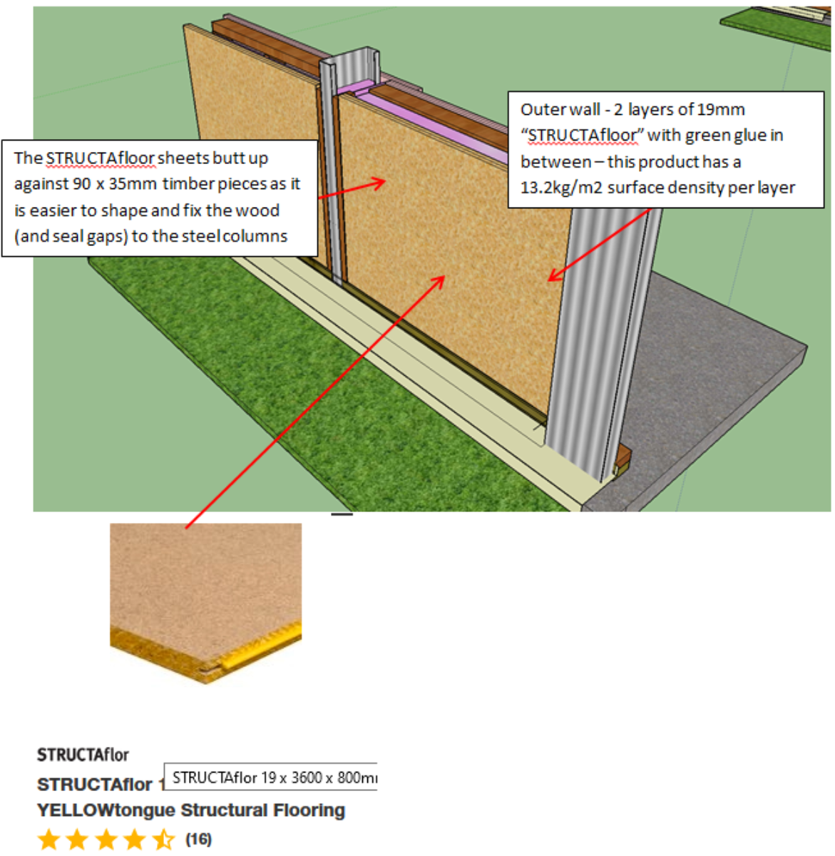 3. I haven’t closed my mind to the outer layer being 1 layer of structafloor and one of mdf or 16mm drywall but structafloor is cheaper per m2; and