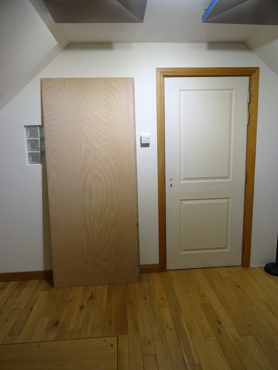 Next jobs are to remove the door, remove the face, fit the MLV, sand the face, Danish oil the face, put all back together, then rehang.