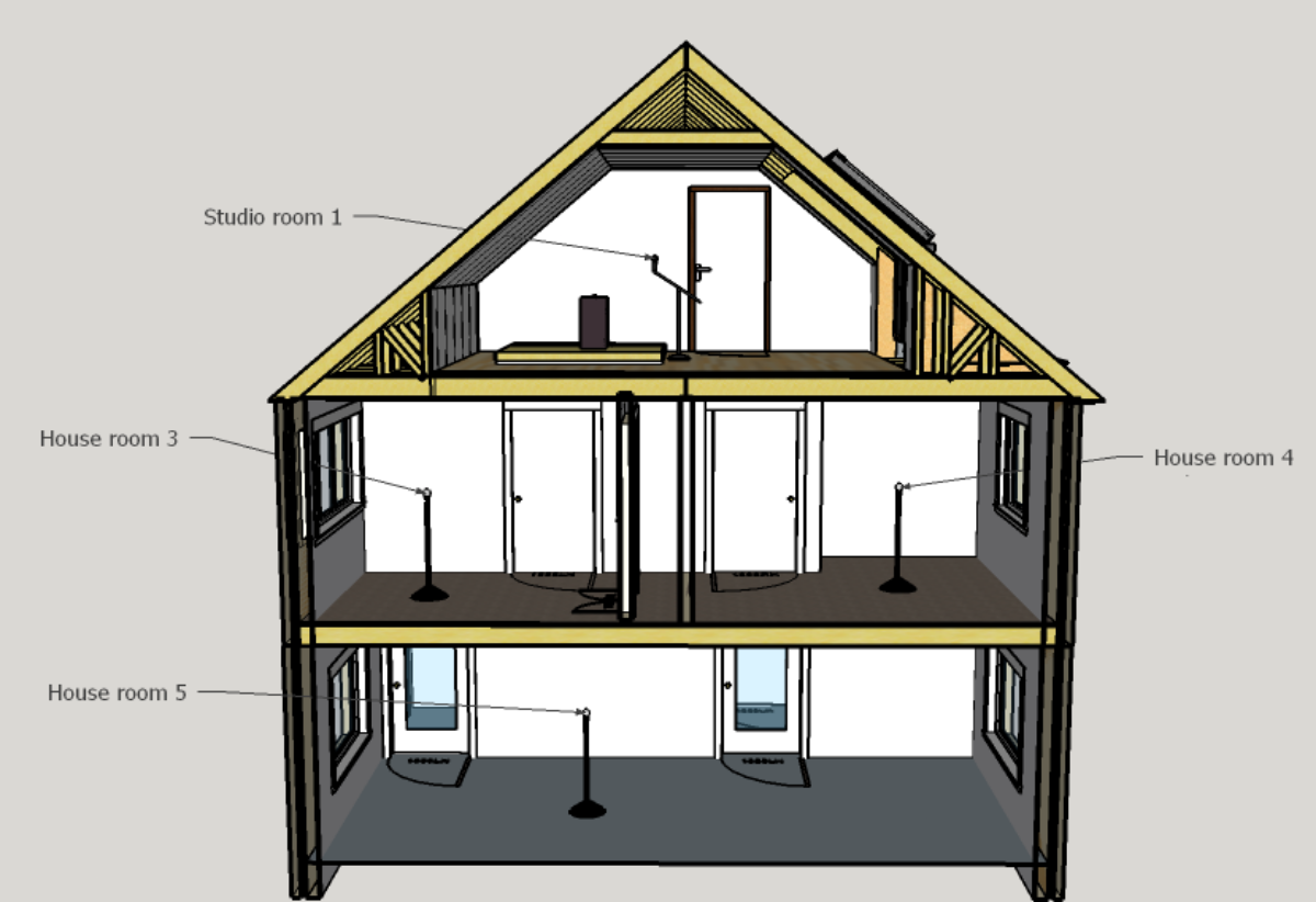 The control room is at the top of the house, "studio room 1", and the wall & door in the top room in these images are the improved ones.