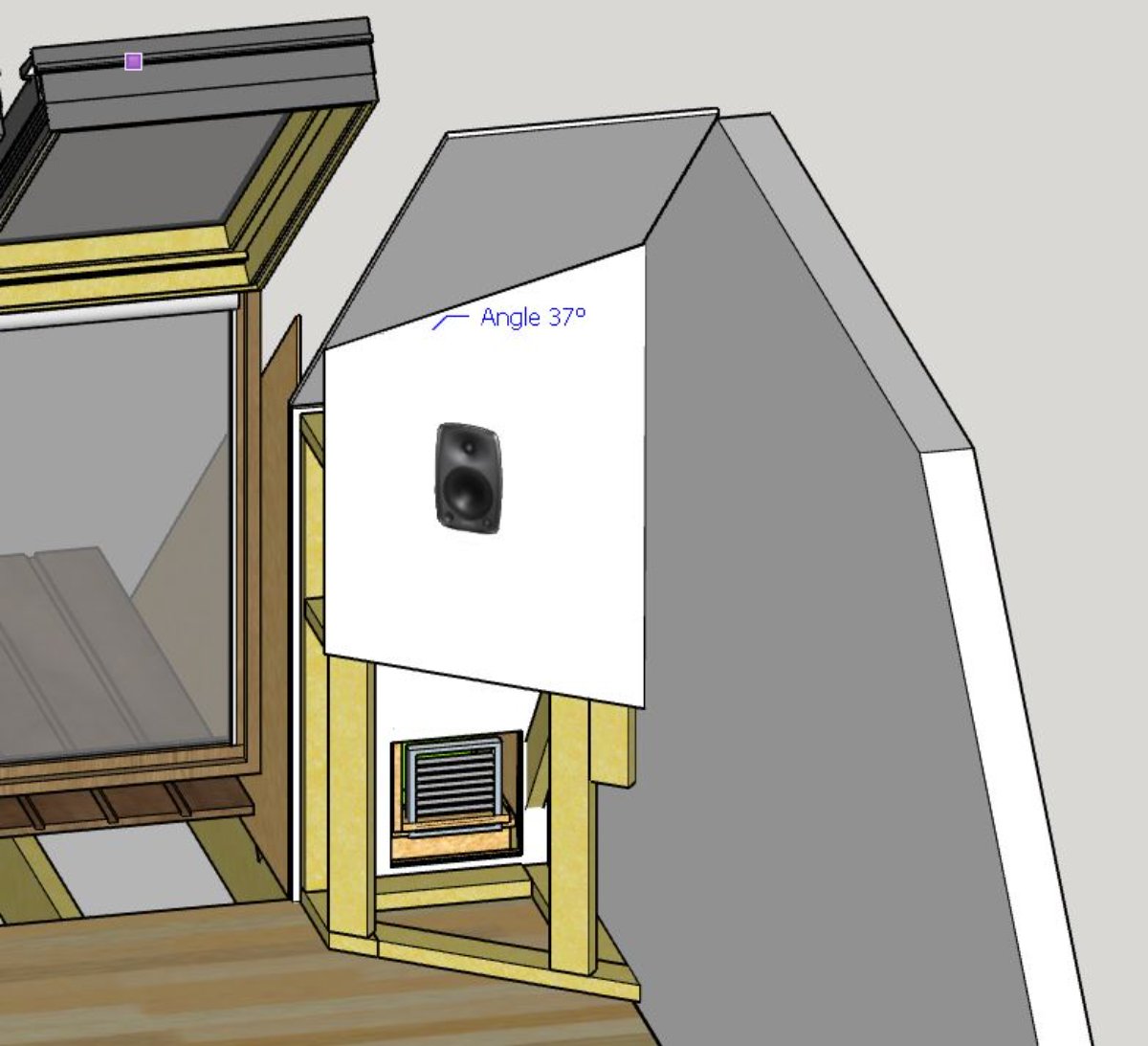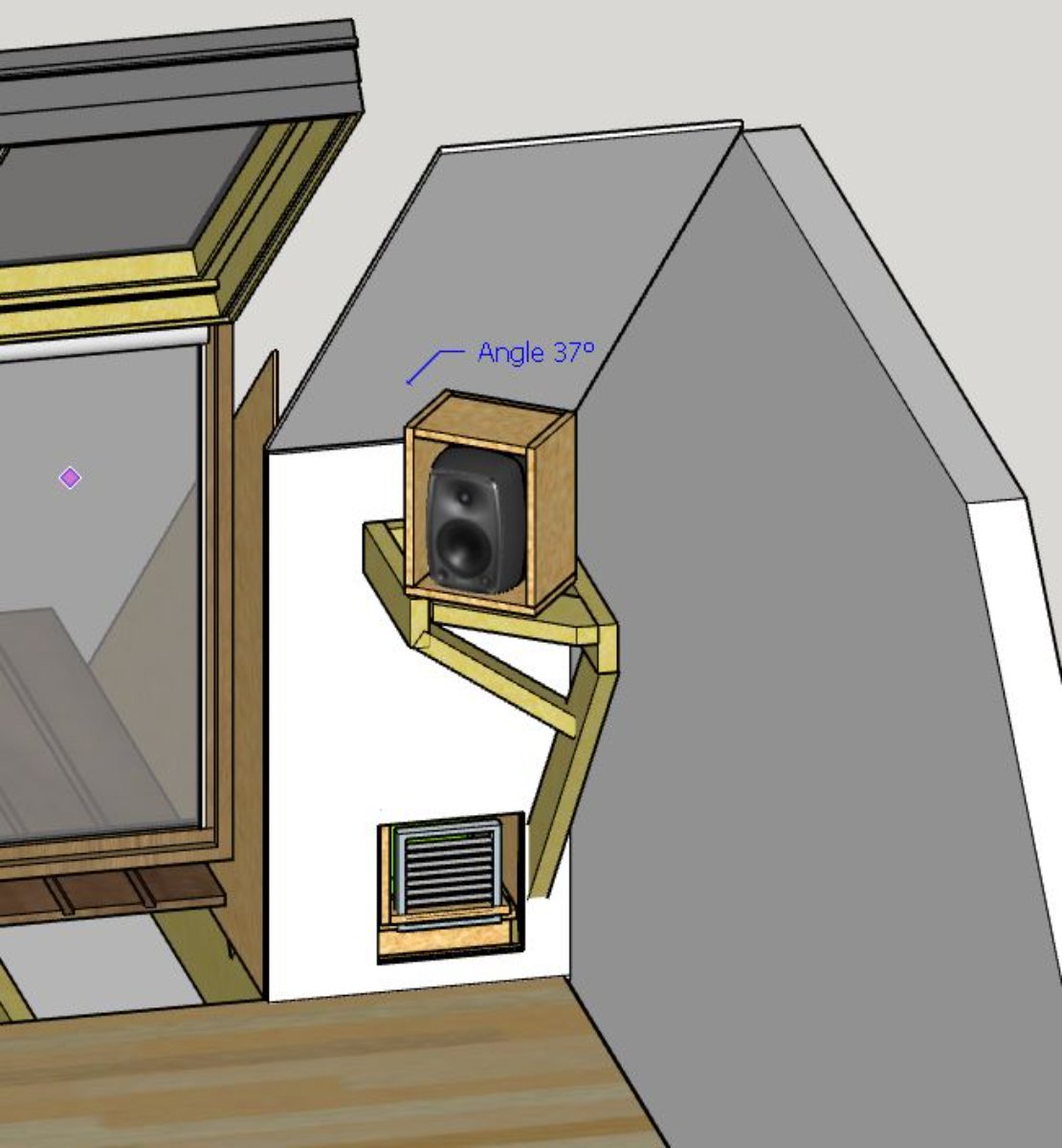 First question: think the duct from the top hole might foul on the sloped ceiling. So would the top of the rear face of the speaker box work instead? The Genelec flushmount kit for the larger 8040 speaker has such a hole on the front face, so seems plausible?