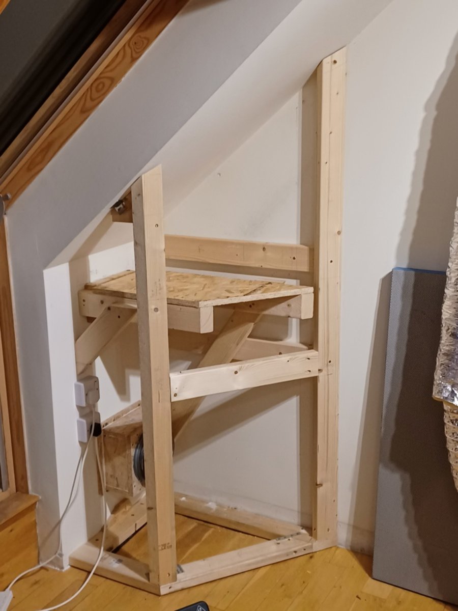I've built the shell of the ventilation supply plenum from 18mm OSB and done a test fit.
